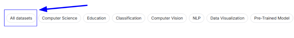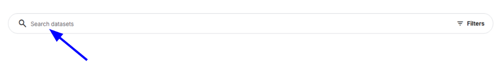 Once you have accessed the datasets tab, you can start searching for all the open source datasets Kaggle has. You can view all datasets Kaggle has by clicking the “All datasets” tab, or you can search for a specific dataset by using the search bar.