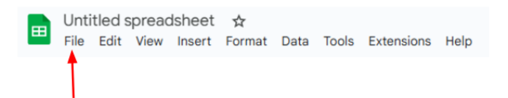 Once you have created a new spreadsheet, you are going to want to import the dataset you downloaded from Kaggle. To do this, first look for the “File” tab in your untitled spreadsheet.