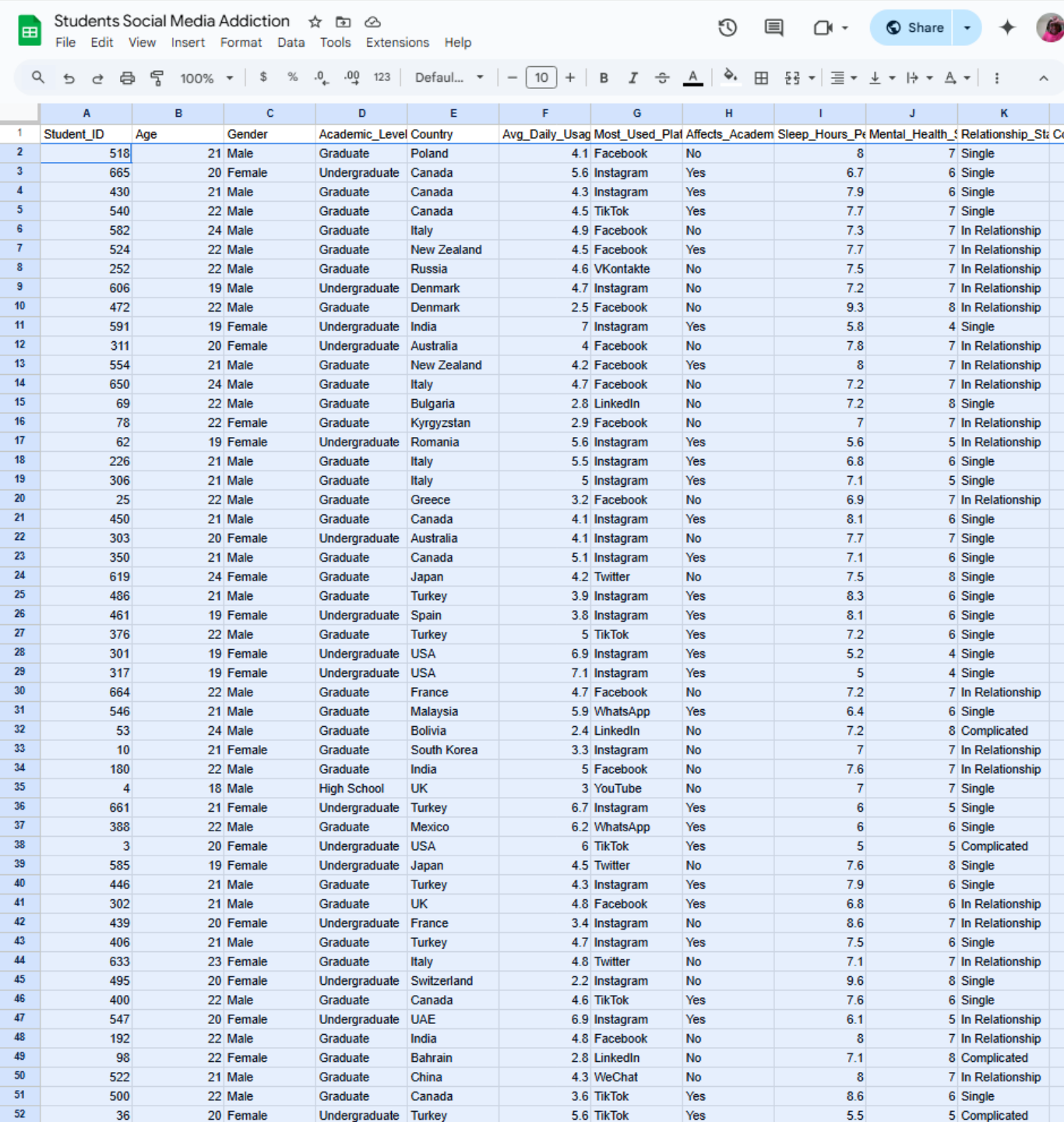Once your dataset is clean and rid of any missing values or inconsistencies, answer the following questions: