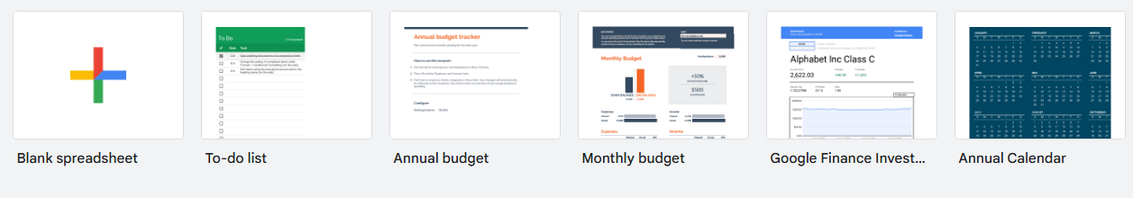 Once you have downloaded the dataset onto your computer, open up Google Sheets from the link at the beginning of the lab. Once you have signed into Google Sheets using your google email, create a blank spreadsheet by clicking on the “Blank spreadsheet” icon located on the top left of the Google Sheets page.