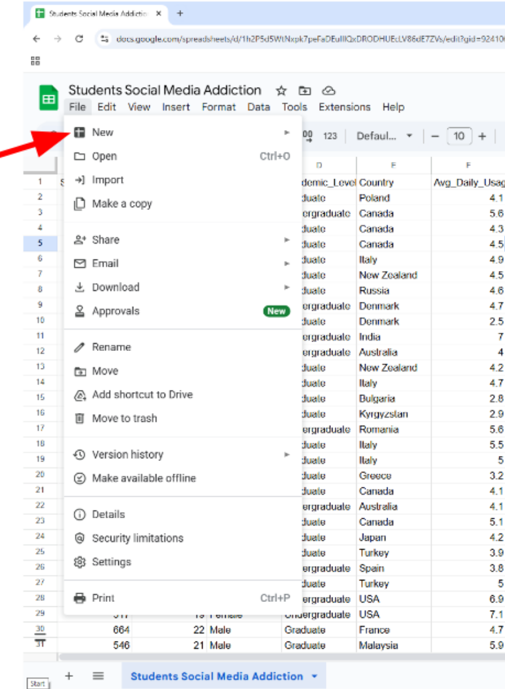 Part 3: Downloading and Importing a Dataset into Google Sheets¶