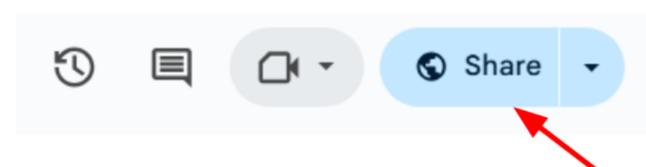 Once you have answered all questions, you are going to want to create a link to your sample spreadsheet. To do this, click the “Share” button on the top right hand corner of your sample spreadsheet